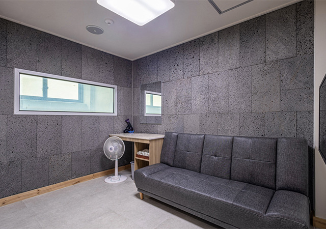 - 룸 입구에 정수기 + 소독된 물병도 준비되어 있어요