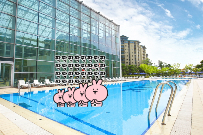 - 성수기에는 야외 수영장도 운영돼요. 탁 트인 자연 풍경을 보면서 수영하니 리조트에 온 기분이 물씬 납니다.
